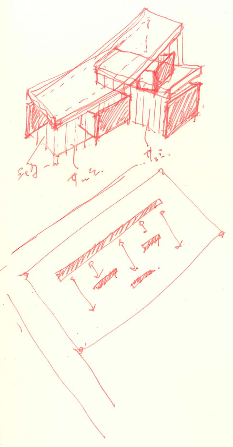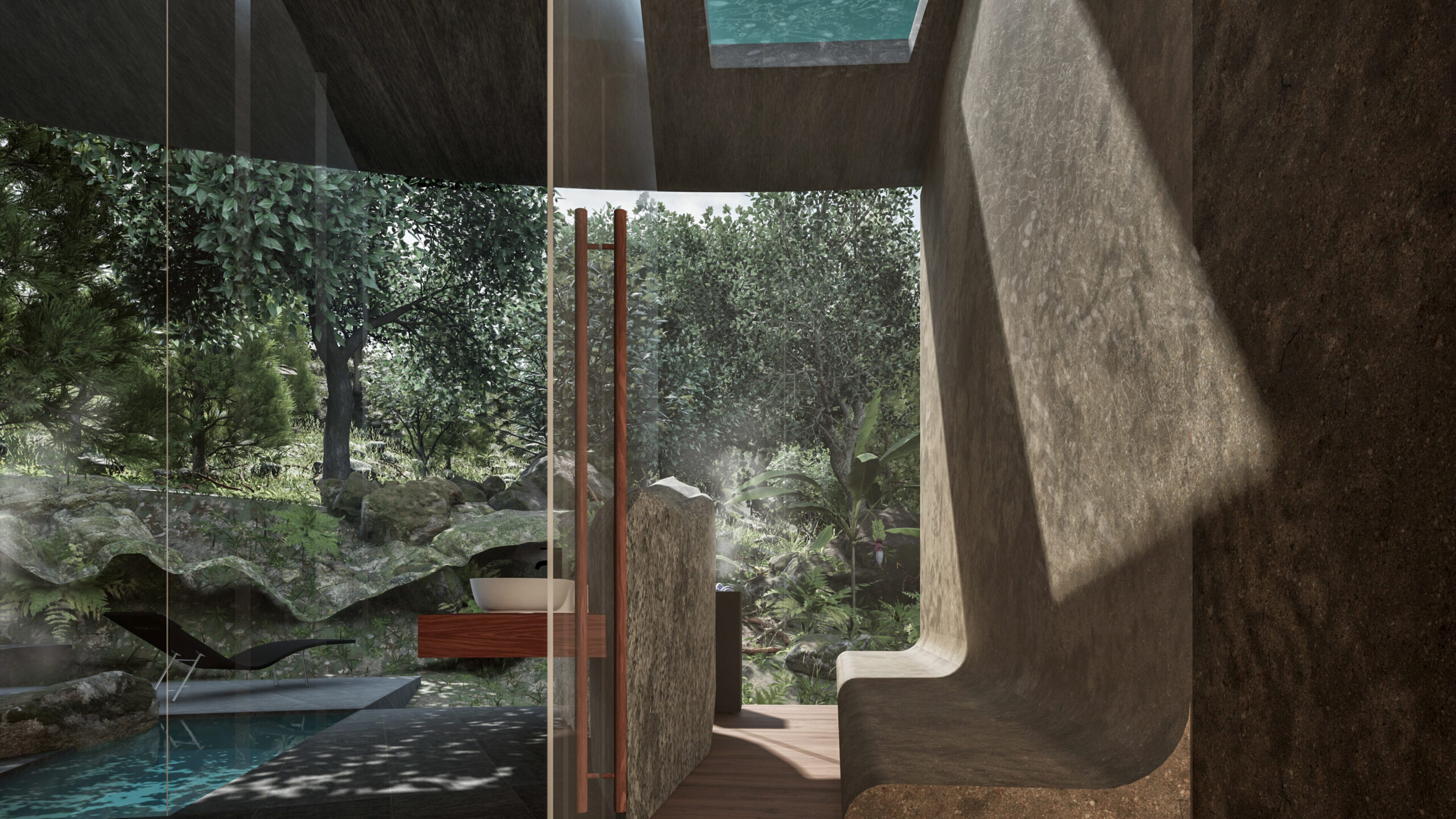 屋久島の「倒木更新」をテーマに、建築を大地の起伏の延長として捉え直した別荘兼ホテルの計画。単なる宿泊施設を超え、住まい手が自らも自然の一部であることを身体的に取り戻すための「器」としての建築を提案した。