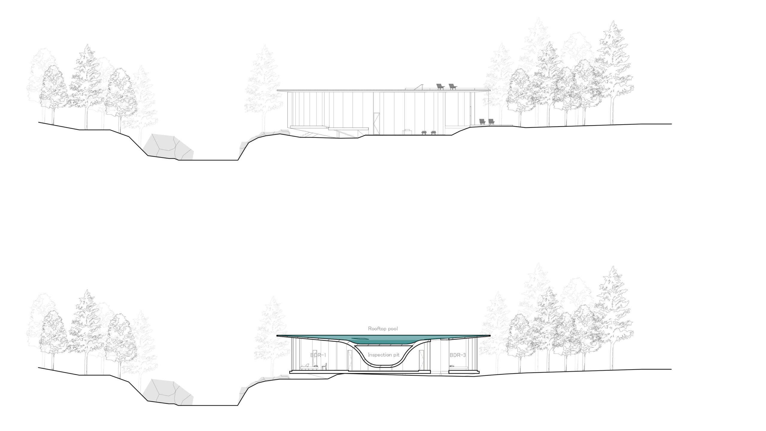 本計画は、この島が持つ「生命を育む空虚」を建築へと昇華させる試みである。これは単なる宿泊施設ではない。水が満たされ、命が更新される窪みの中で、人は自らもまた自然の循環の一部であるという感覚を、身体的に取り戻すことになる。